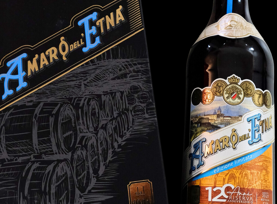 To celebrate this extraordinary historic birthday, the company has created "Amaro dell'Etna Riserva 120 Anniversario", a limited production edition of 5000 bottles every two years, created precisely to celebrate the important one hundred and twentieth anniversary of its birth. The prized "Amaro dell'Etna Riserva 120 Anniversario" is refined in 5-hectoliter Etna Chestnut Tonneaux for a minimum period of two years. The long and patient refinement process includes a specification that includes the rotation of the barrels every week, thus mixing the precious liqueur inside them, and thus generating the Bâtonnage effect to reach the full maturity and intensity desired.